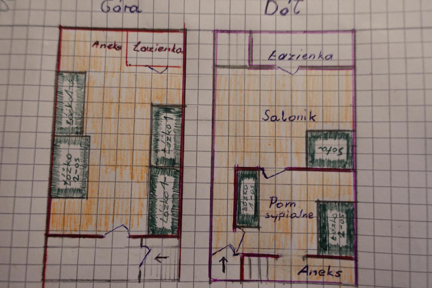 Domek z 2 sypialniami. The fireplace is the standout feature of this chalet. Boasting a private entrance, this spacious chalet also features 1 living room, 2 separate bedrooms and 2 bathrooms with a shower. Guests can make meals in the kitchenette that features a stovetop, a refrigerator, kitchenware and an electric kettle. The chalet has tiled floors, a seating area with a flat-screen TV, soundproof walls, a dining area as well as garden views. The unit has 6 beds. Domek - 5 osobowy. Powierzchnia pokoju ok.: 80 mkw.